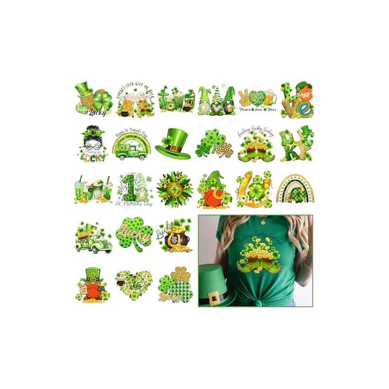 - ππππ ππ ππππππ:St.Patrick's Day heat transfer stickers is a finished pattern with no cutting required!6 different styles of St.Patrick's Day patterns, Multi-color choices for you to create individual, unique design for your T-shirts.