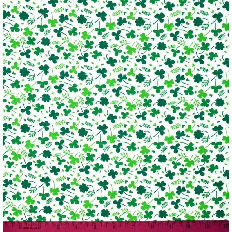 St Patricks Day Fabric - HALF YARD - 100% Cotton Small Shamrocks Blender White