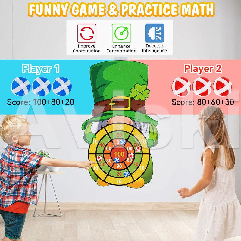 St Patricks Day Kids Dart Board Game Set, Irish Party Board Games with 12 Stick Balls, St Paddys Day Outdoor Games for Kids Ages 4-8, Saint Patricks Day Party Games Yard Toys…
