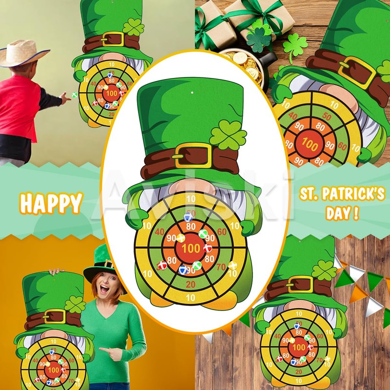 - 【ADD MORE FESTIVE ATMOSPHOERE】Get ready for St. Patrick's Day with this fun and festive dart board game featuring a cute gnome pattern! This dart board game is a great way to bring friends and family together for some St. Patrick's Day fun, whether you're celebrating indoors or outdoors. It's also a perfect addition to any party or gathering, adding a fun and interactive element that everyone can enjoy.