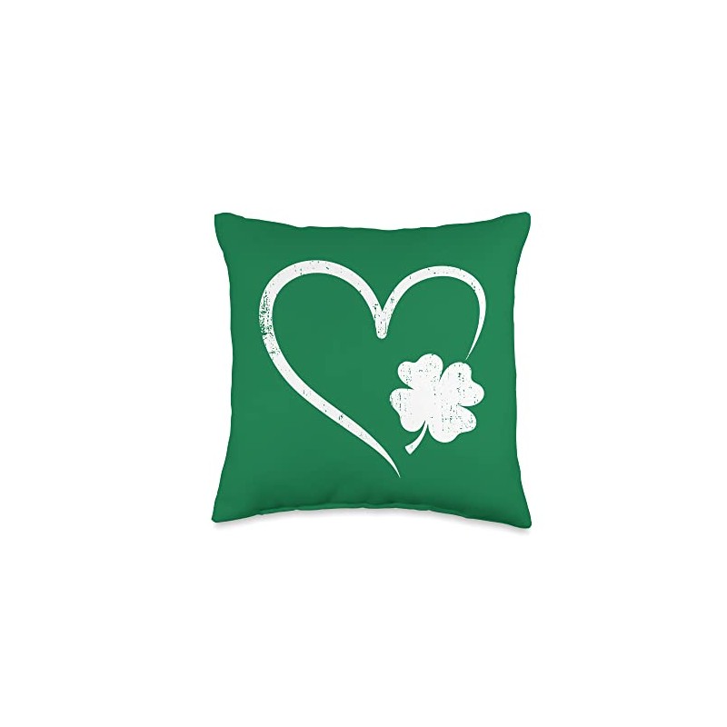 St Patricks day love store St Patricks Day Love with Heart and Shamrock Clover Throw Pillow, 16x16, Multicolor