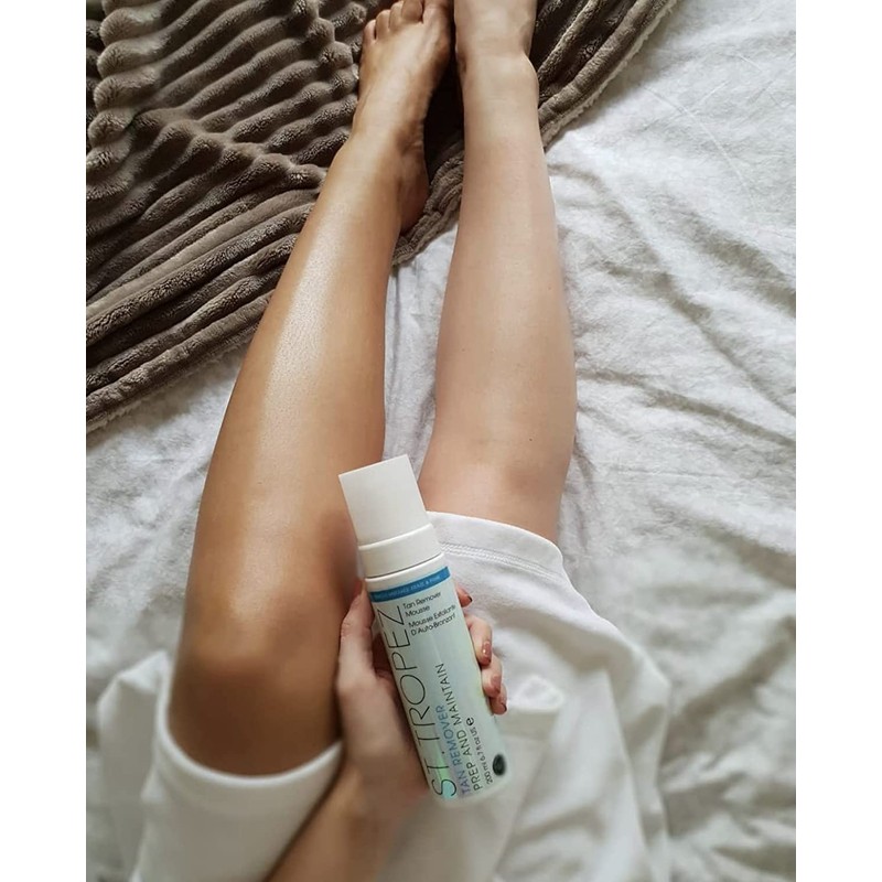 DETOX & PRIME, The quickest and easiest way to remove mistakes or tan build up - and prime skin for a fresh tan application. Suitable for even sensitive skin, this luxurious foam effectively removes all traces of even the darkest tan in minutes. Infused with detoxifying cotton extract it purifies, whilst probiotics rebalance and prime the skin leaving the perfect clean canvas for your next St.Tropez glow.