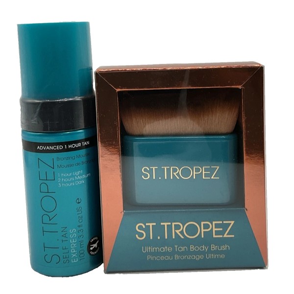 St. Tropez Ultimate Tan Body Brush New in Box + 3.3 oz Self Tan Express Mousse