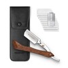 Störtebekker® Razor with Wooden Handle in Handmade Leather Case Including Alum Pen and Shaving and Beard Guide E-Book [10 Astra Blades] Razor Set - Premium Quality Wet Razor Straight Razor