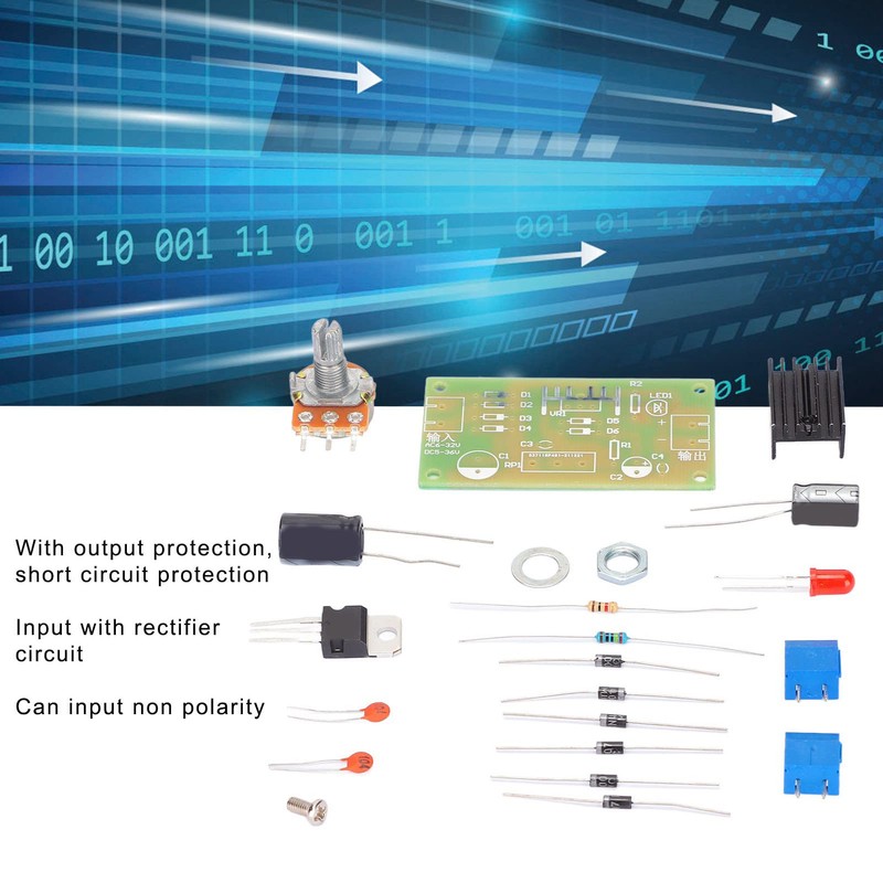 - Non-polarized input: LM317 adjustable stabilized power supply kit with rectifier circuit input for non-polarity