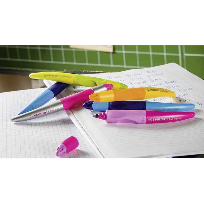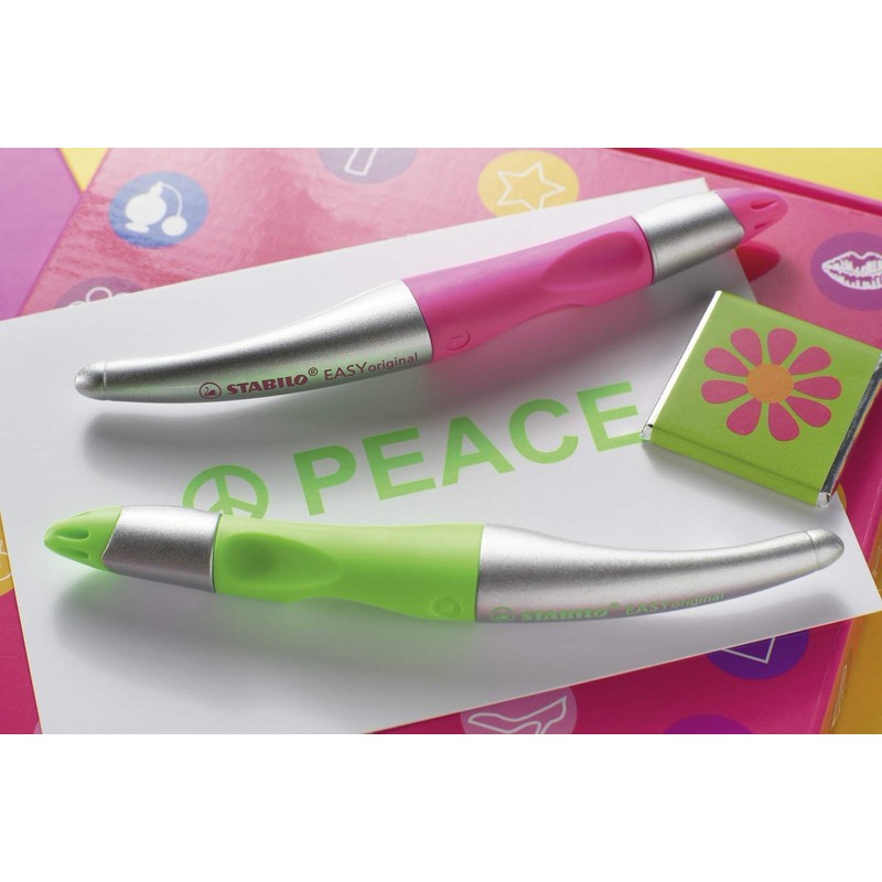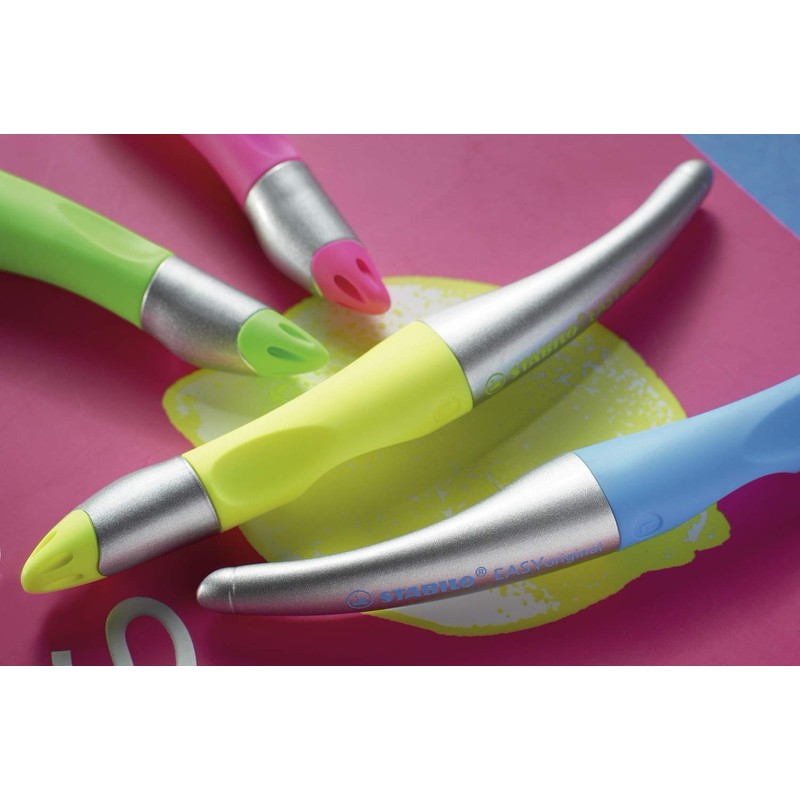 Stabilo EASYoriginal Ergonomic Rollerball Pen for Right-Handers - Metallic in Neon Green/Metallic - Single Pen - Blue Ink (Erasable) - Includes Cartridge