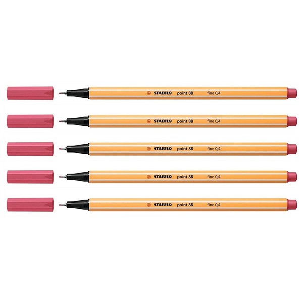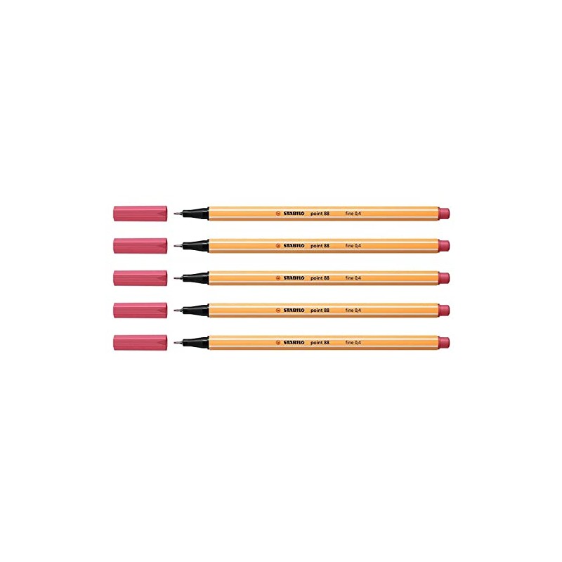 STABILO Pack of 5 Felt-Tip Pens with Fine Point 88 – 0.4 mm Grenadine Redaa