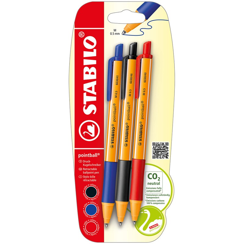 STABILO STABILO - Druck-Kugelschreiber - pointball - 3er Pack - blau, schwarz, rot