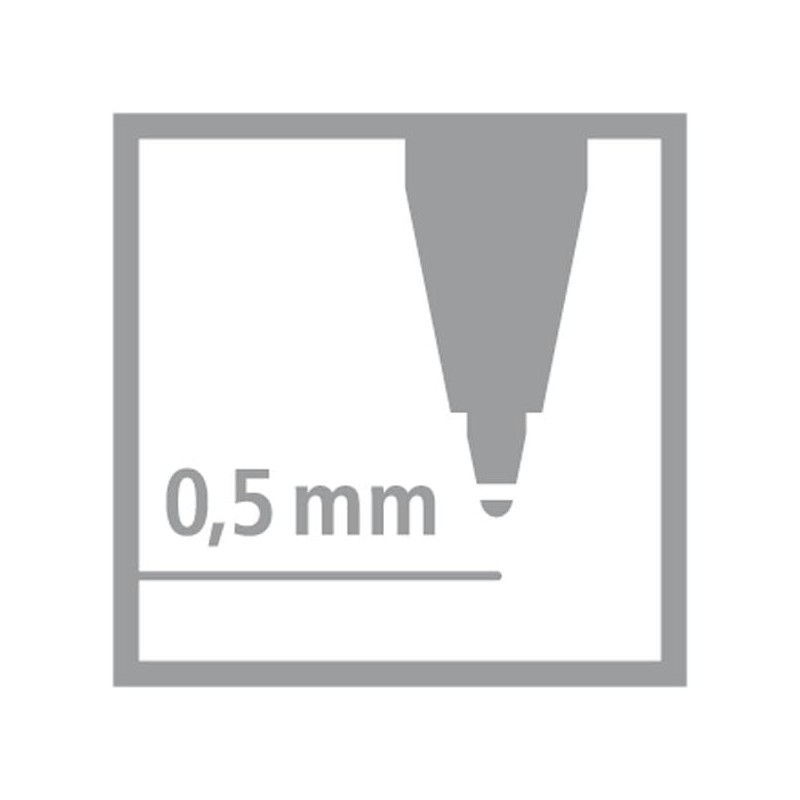 - Strichstärken: 0,5 mm (blau, schwarz, rot) & 0,3 mm (nur blau)