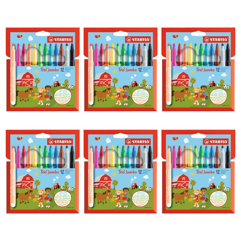 STABILO - Thick Felt Tip Pen - Trio Jumbo - 6 x Pack of 12 - 12 Colours