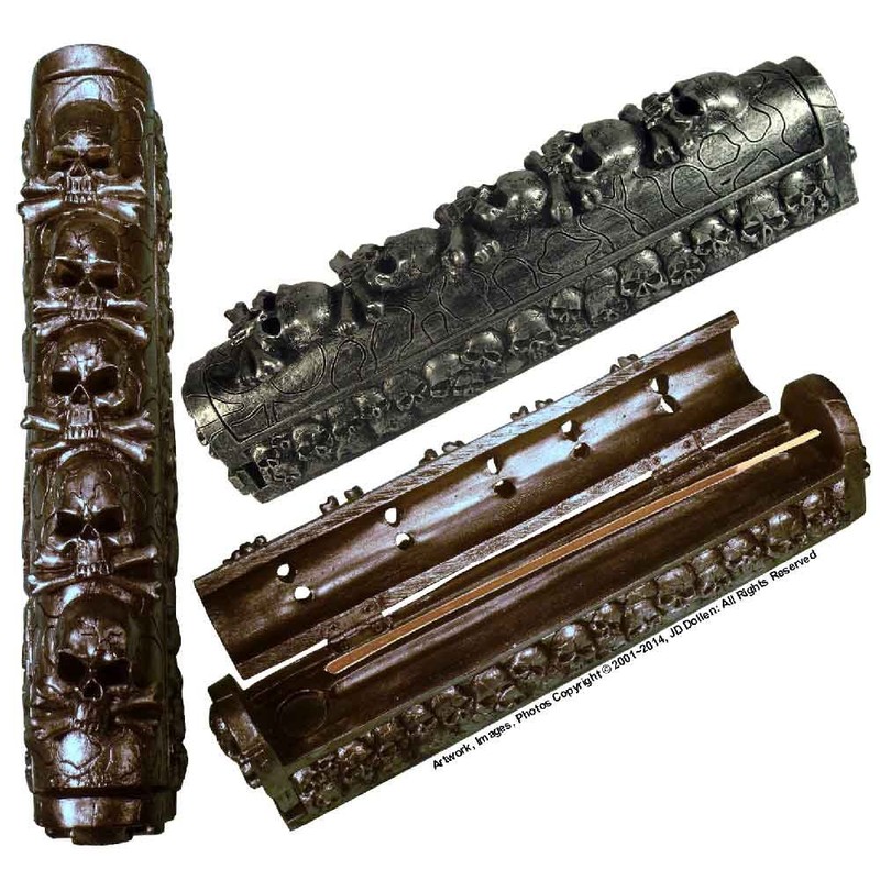 Stack of Human Skulls Coffin Box Incense Stick Cone Ashcatcher Burner by Nose...