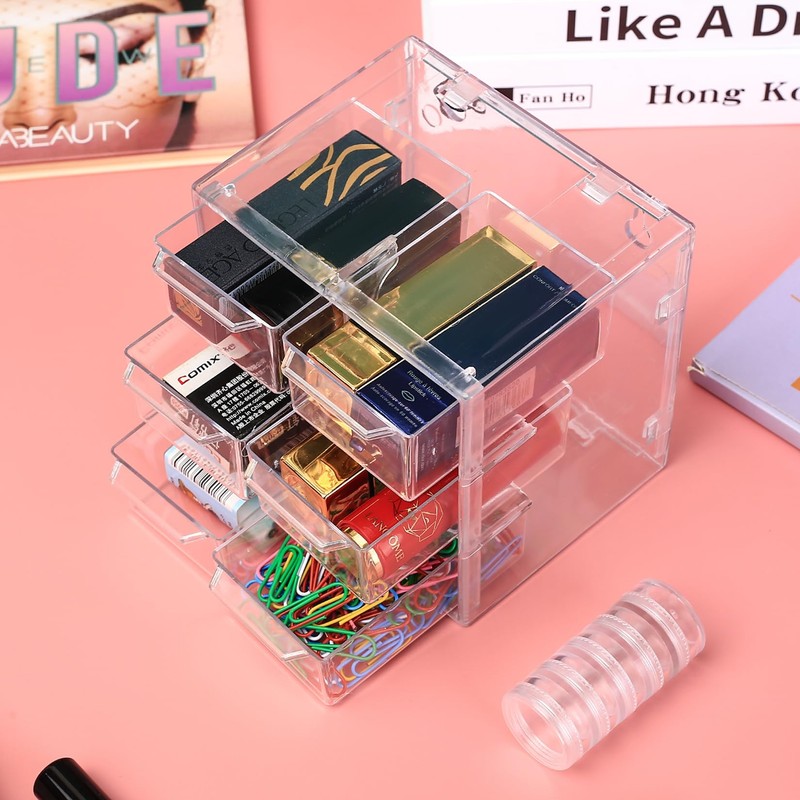 - Drawer design: the overall size of make-up organiser boxes is 12 x 10 x 12 cm and it is equipped with 6 small drawers with built-in small handles for easy access. Provides you with an efficient way to organize and maximize your space and keep everything organized.