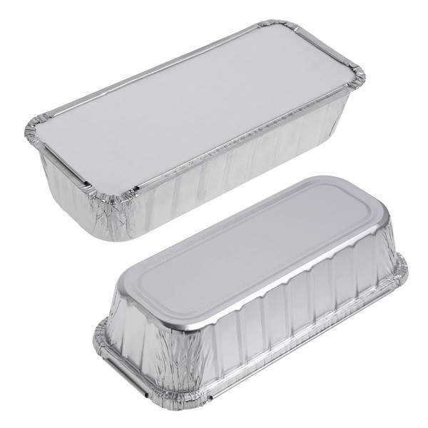 - COMES WITH A LID : Each disposable food container comes with a lid, and you can easily pinch the foil edge over the lid rim for a strong freshness seal. Despite their lightweight convenience, our foil baking loafs promise heavy-duty performance for a variety of uses. Great for holding bread, cookie and cake batters, fruit and veggie salads, quiches, and beyond.