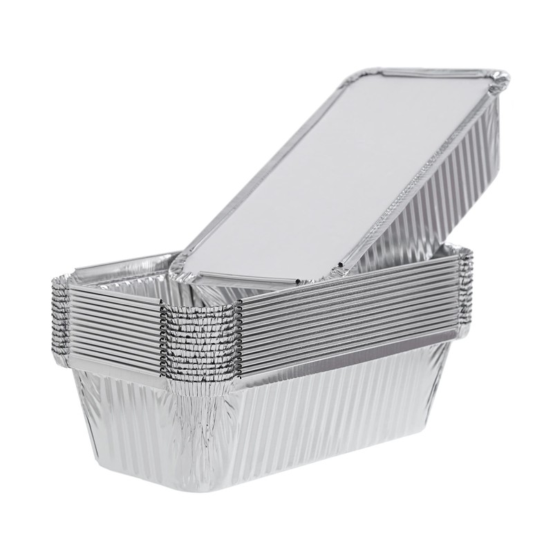 - BAKING TRAYS : STACKABLES medium loaf aluminium foil pans with lids are made of heavy duty aluminum foil. It is light weight and convenient to carry. These take-out containers are very durable and reliable. The pans are ideally sized to be comfortably placed in steam table pans or buffet serving kits. Great for food storage as in deep freezing, storing meals. Also is great to use as a lunch box .