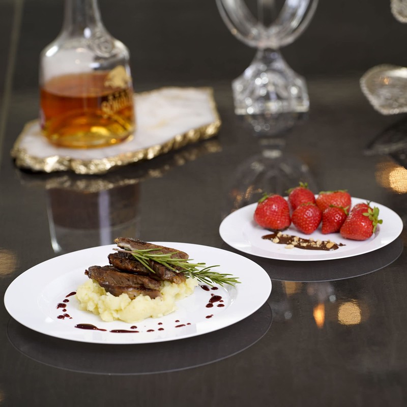 🍥 ✨ Whether you’re serving salad, appetizers or dessert, these elegant plastic party plates will fit all your needs, turning your party into a glamorous affair.