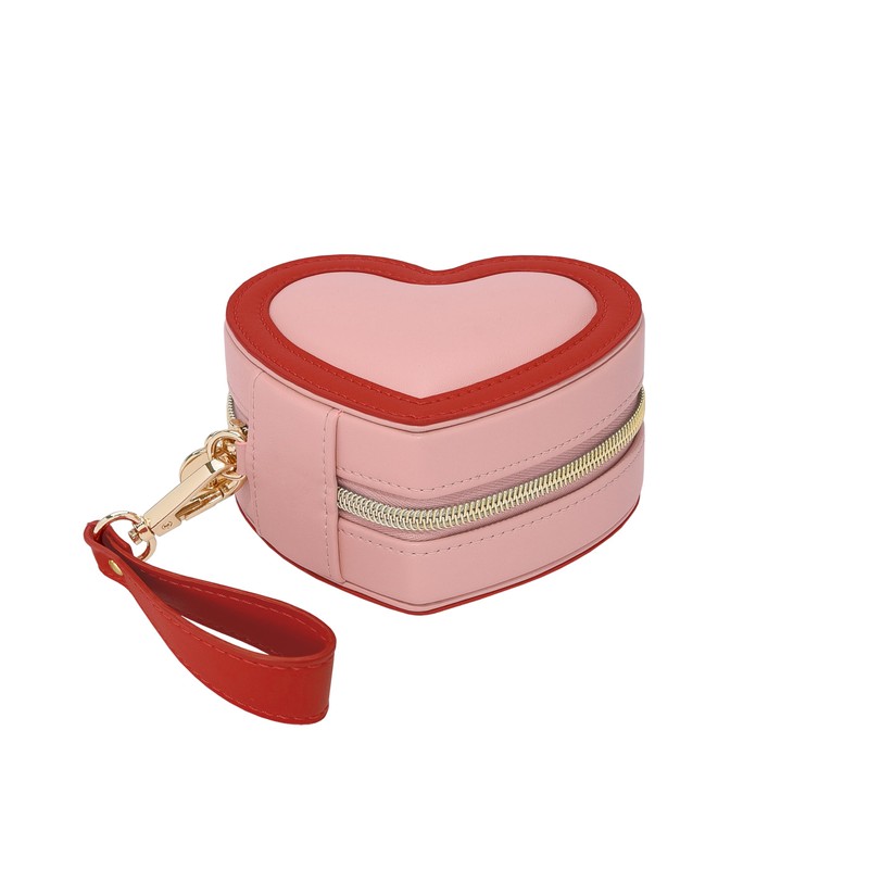 The Heart Travel Jewellery Box has been designed to keep your treasured jewellery pieces safely stored either at home or while you travel. It makes the perfect gift for a loved one. Inside you'll find multiple sections for a range of jewellery, including a ring roll for rings and stud earrings, loops to keep chains from tangling and a zipped pouch for further storage. Made from a soft faux leather with a velvet interior to keep jewellery protected.