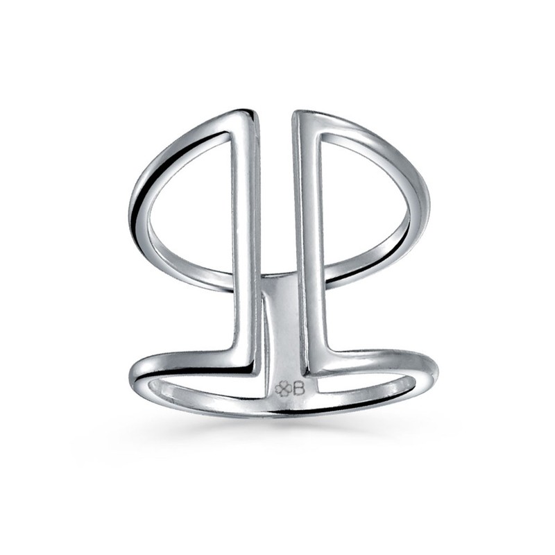 Stacking Modern Double Vertical Thin Band Bar 925 Sterling Silver Ring