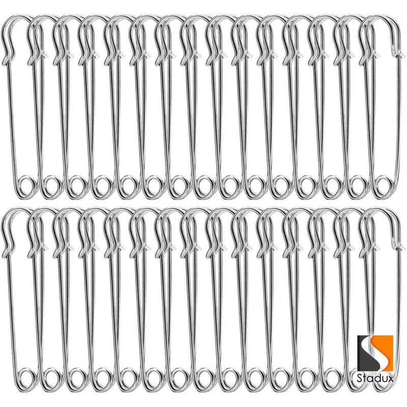 Stadux 30Pcs Large Safety Pins, 2 Inches Strong Safety Pins For Hefty Materials Like Blanket Quilt Upholstery & Fabric, Stainless Steel Sliver