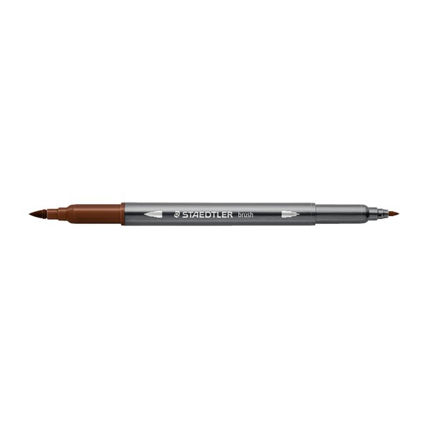Staedtler 3001 – 3001-76 – Watercolour Felt Tip Double Brush Tip 1-6 mm and Fine 0.5-0.8 mm Brown