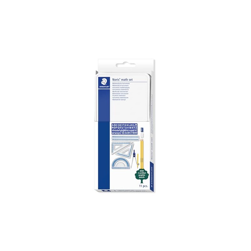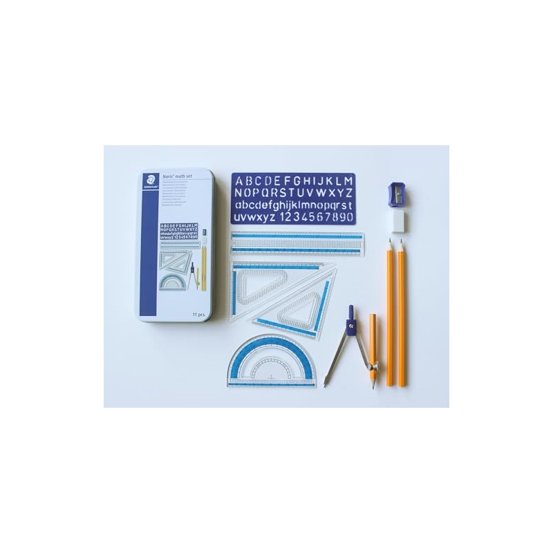 STAEDTLER 557 11 Noris Maths Set with Storage Tin (11 Pieces including Compass, Ruler, Protractor and Set Squares)