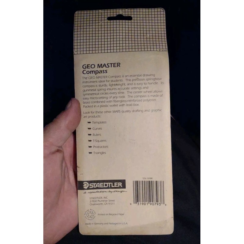 Staedtler Geo Master Compass. Condition is New Old Stock in Original Packaging. Some wear on the packaging from being stored as you can see in the pictures. Pictures are part of the description. Thanks for looking.