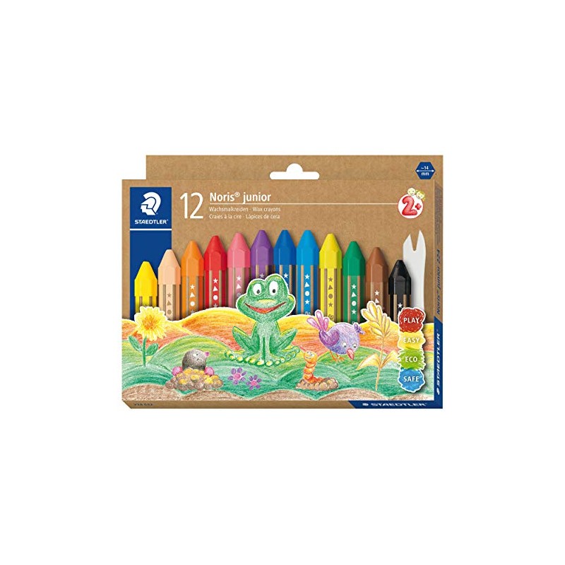 STAEDTLER Noris Junior 224 Wax Crayon, Perfect for Small Children's Hands, Extra Shatterproof, Case with 12 Colours, 224 C12
