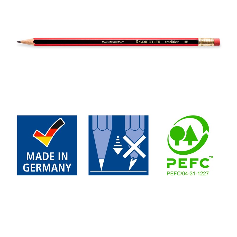 The tradition pencil range from Staedtler is a suite of high quality pencils, suitable for writing, drawing and sketching, making it the ideal pencil for school and office use. The break resistant formulation and eraser tip makes it a winner in the classroom.