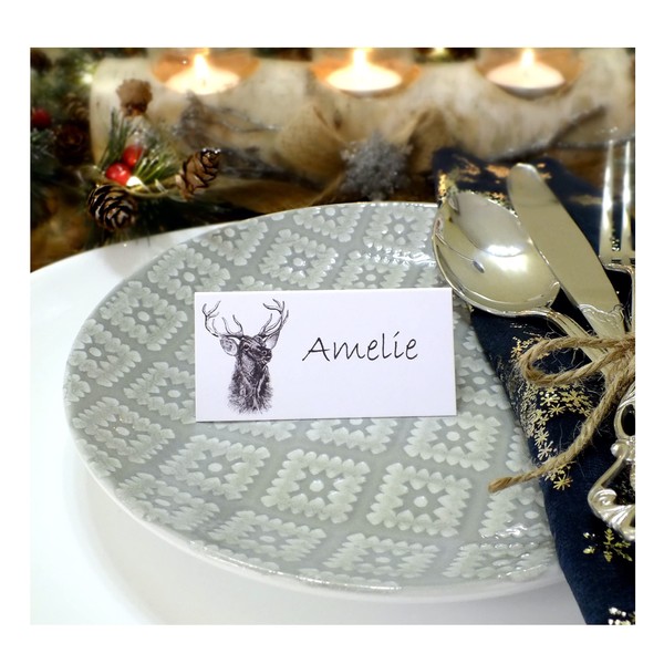 Stag Christmas Place Cards in White - Reindeer Dinner Party Guest Name Card - Pack of 12