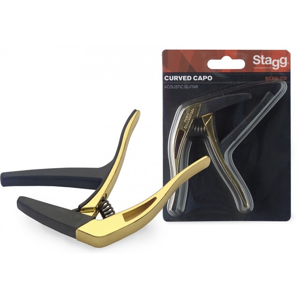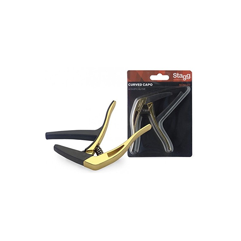 Stagg 19161 Trigger Kapodaster mit Gummiauflagen für Akustik- E-Gitarre gold