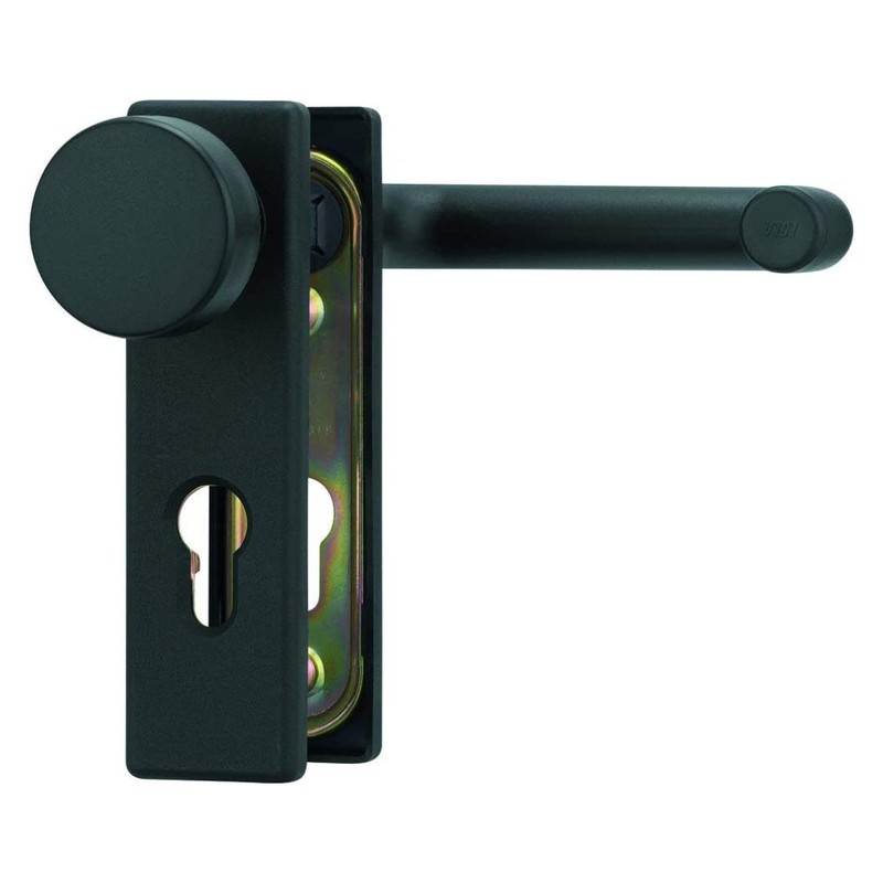 stahl-design.shop Fitting for fire doors, colour: jet black, similar to RAL 9005 matt, interchangeable set square (handle and button), hole spacing 72 mm, eco shoulder