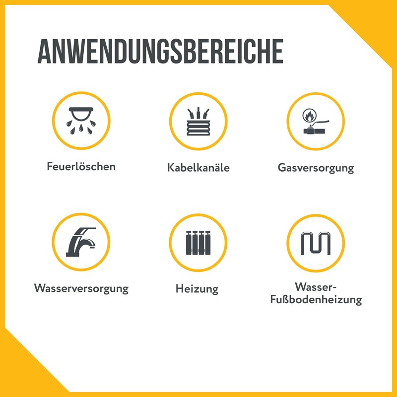 The unique design of the fittings ensures a tight and durable connection of the Stahlmann corrugated pipes. The products are highly dust and moisture resistant and resistant to temperature fluctuations, sparks, rodents, fungi and mould.