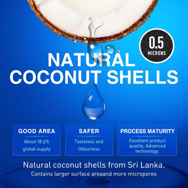 - Filter Material: Sri Lanka coconut shell activated carbon & 0.5 micron filter layer, removes 99% of chlorine, odor, heavy metals, and impurities, BPA-free material