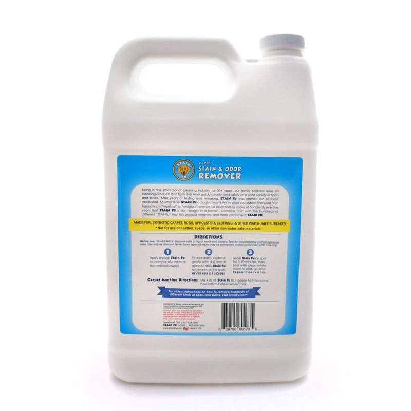 STAIN FU Pet Stain Odor Remover Professional Strength Powerful Eliminator for Tough Dog Cat Pet Urine Pee Poop Feces Vomit Slobber Drool Blood Wine Coffee Home Kennel Car RV Office (1 Gallon)