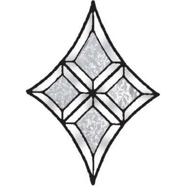 Stained Glass Supplies Flared Diamond Style Clear Glue Chip Bevel Cluster BC309SGC This bevel cluster consists of 4 clear beveled pieces of glass and measures 4 3/4 x 7 inches when completed and comes with a pattern layout guide. This listing for a bevel cluster that you must foil and solder together, not for a finished piece.