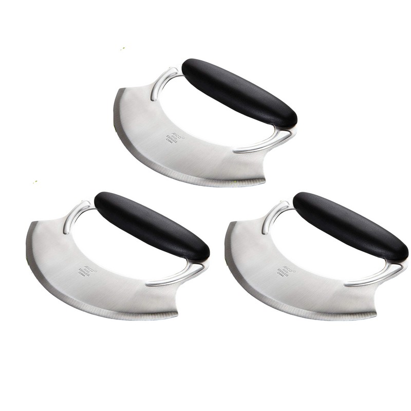 Stainless 3 Pack Amco Stainless Mezzaluna Non-Slip Handle Rocking Knife Chopper Mincer