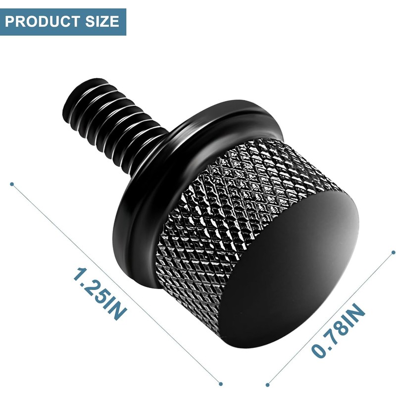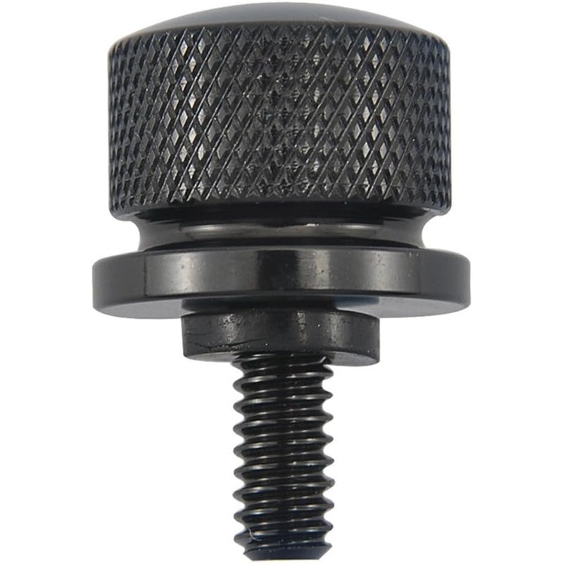 - GLOSS BLACK SMOOTH FINISH SEAT BOLT - The smooth gloss black finish is cool indeed, makes your billet aluminum black rear seat bolt mount screw different and eyes-catching. A cool alternative to that boring factory seat bolt. Show your attitude! An essential accessory for motorcycle and enthusiasts, adds sleek style to your ride.