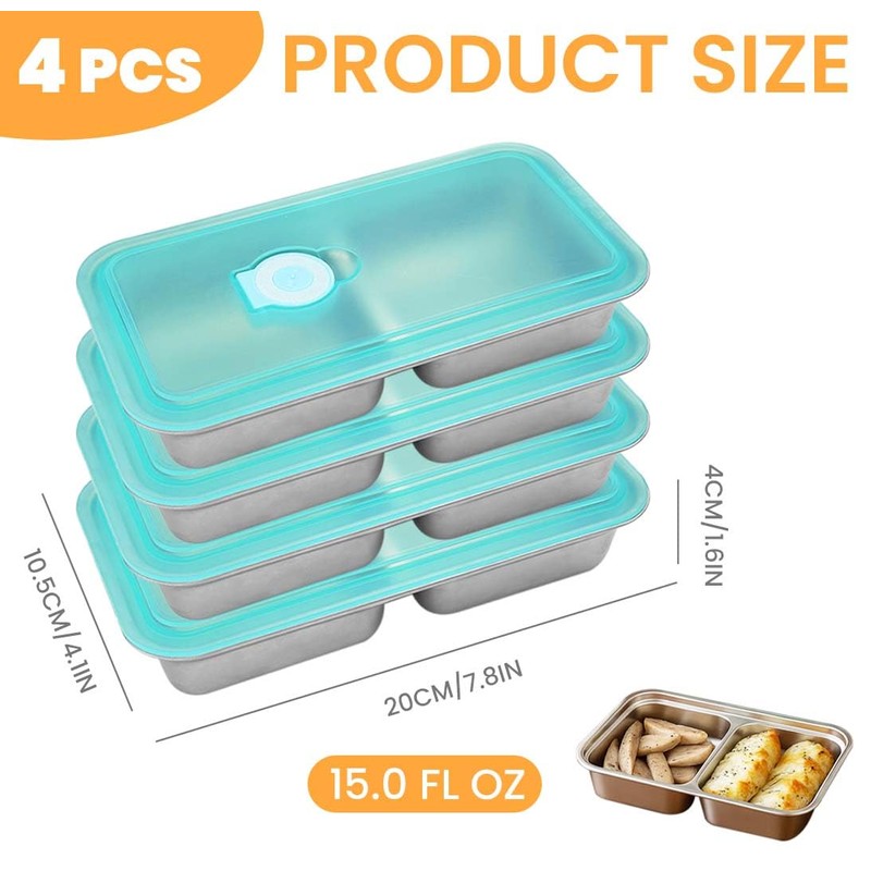 Stainless Snack Container Reusable, Double Compartment Snack Containers with Lids, No Spill Takeout Travel to Go Outdoor Camping Reusable Dishwasher Safe Snack Box for Food (4)