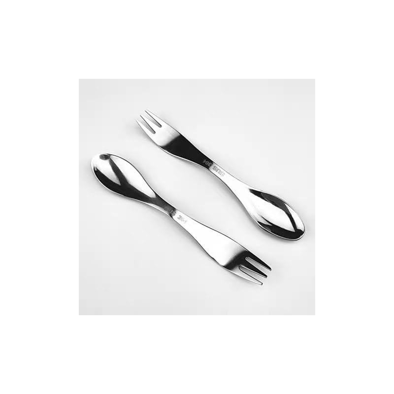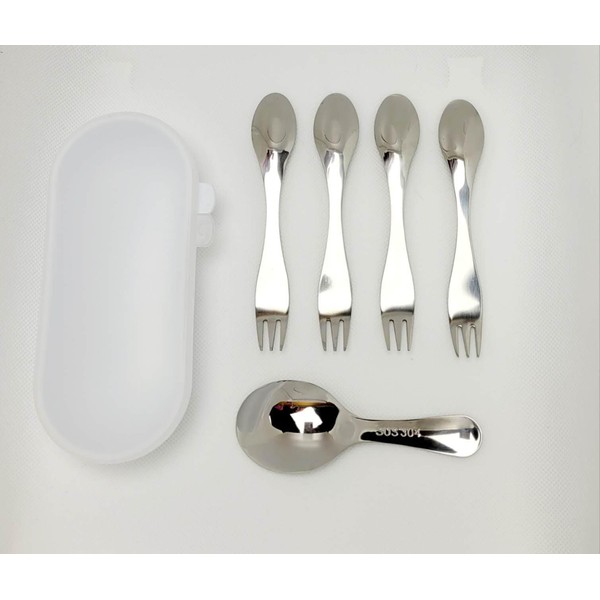 Stainless Steel 2 in 1 Spoon and Fork Set for 6 Piece, (4 Piece 2 in 1 Spoon Fork and 1 Large Short Handle Spoon, 1 Carrying Case)