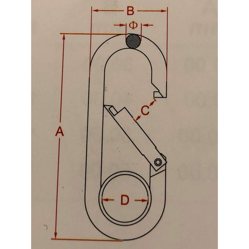 Stainless Steel 316 Spring Hook Long Type with Eyelet 1/4" (6mm) Marine Grade