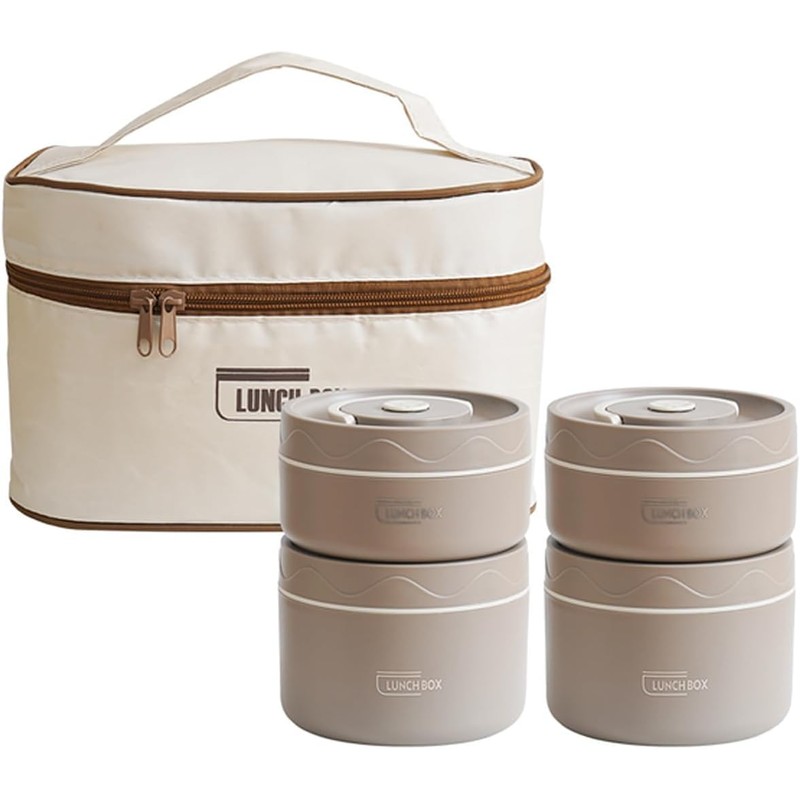 Stainless Steel Bento Box Adult Lunch Box, Portable Insulated Food Lunch Container Set with Thermal Lunch Box, 4 Separate Stackable Lunch Container for Adult Kids Men Women