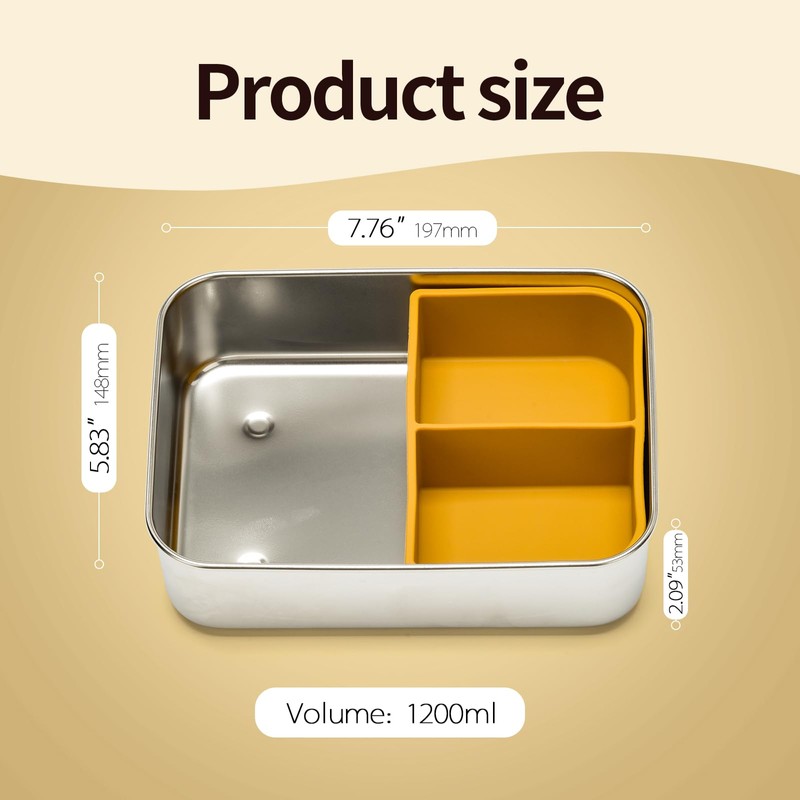 Stainless Steel Bento Box for Kids Adults, Toddler Lunch Box Containers with Silicone Lid,Removable 3 Compartment Design,Leakproof Snack Container, BPA Free, Dishwasher Safe-(1200ml,Yellow)