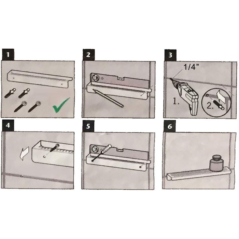- Easy To Install: The SereneDrains shower shelf is optimized for easy installation. Hardware Included (2 fasteners, 2 stainless steel 2 ¼” screws). Instructions in product description.