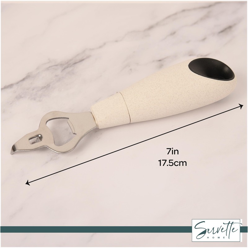 - ERGONOMIC DESIGN: Comfortable handle combines wheat grain fiber and polypropylene materials for a secure grip while puncturing cans and opening bottles