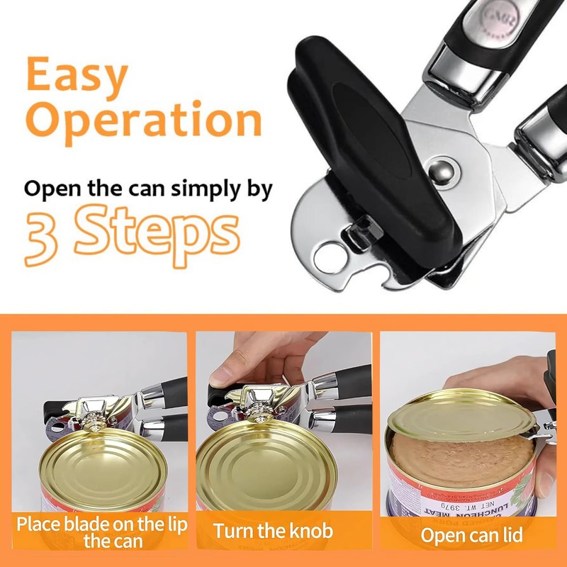 - 【Easy To Clean】- You just need to wash the can opener under running water and wipe it dry. The high-quality stainless steel can opener is guaranteed never to rust.