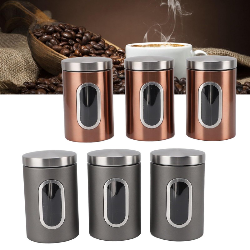 - WINDOWED DESIGN: With an open window designed, kitchen canister set is convenient for you to check the remaining amount of coffee beans. By instantly knowing the storage condition of coffee beans, you can replenish fresh coffee beans in time.