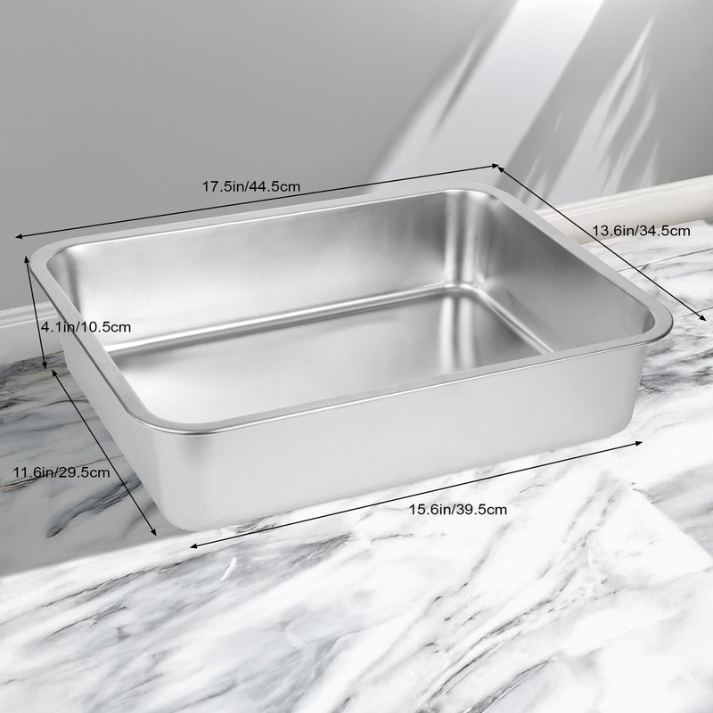 - 【Stainless Steel Material】: This stainless steel litter box (17.5 x 13.5 x 4.1 inches) is crafted from high-quality stainless steel, ensuring it won’t absorb odors, stains, or rust. It provides a hygienic solution for your pet.