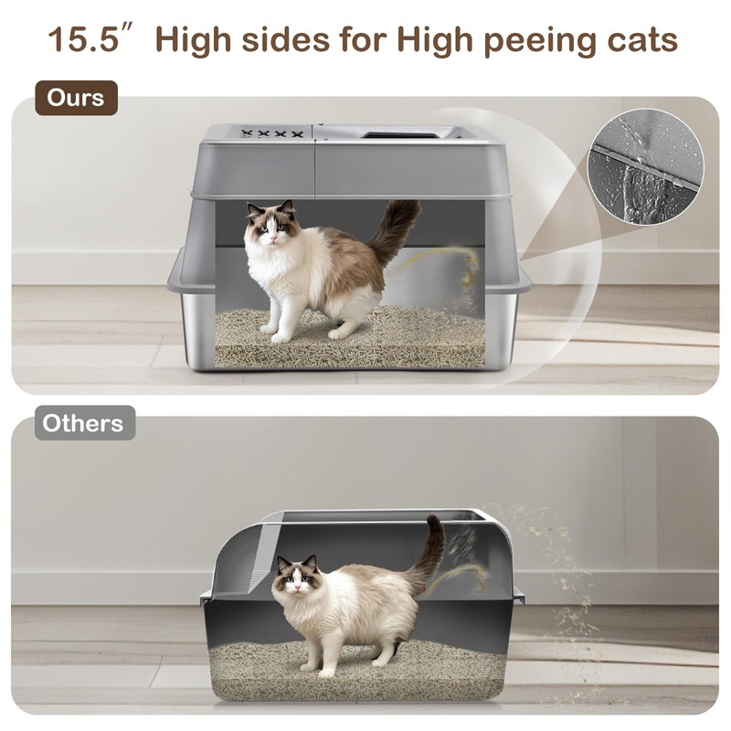 - 【SPACE-SAVING & STORAGE】: The stainless steel litter box with lid holds 38L of litter for multi-cat households. Includes a stainless steel scoop and storage compartment for tidy organization. Removable parts fit in standard sinks for hassle-free washing.