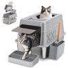 Stainless Steel Cat Litter Box with 110° Flip-Top Lid, XXL Large Enclosed Metal Litter Box for Big Cats with Scoop & Pedal, Removable Lid -Odor Control, Non-Stick Surface, Front Entry Top Exit (Grey)