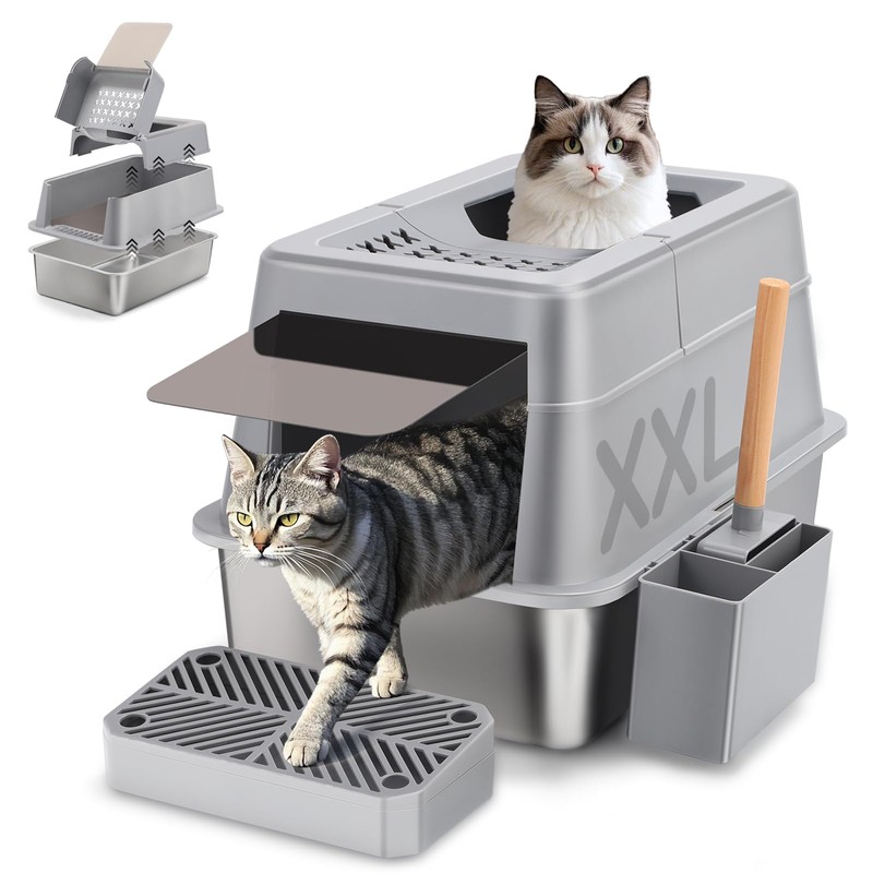 - 【MULTI-FUNCTIONAL DESIGN】: Shikha extra large stainless steel litter box features a detachable flip-top lid for 3 usage modes: fully enclosed, semi-open, or open litter pan. Easy to disassemble and clean, ensuring long-lasting hygiene.