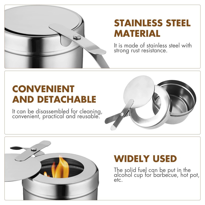 - Our alcohol fuel holder can be used for a long time. It is not easy to rust, does not change color, and high temperature resistance. Stainless steel material is great for outdoor use.